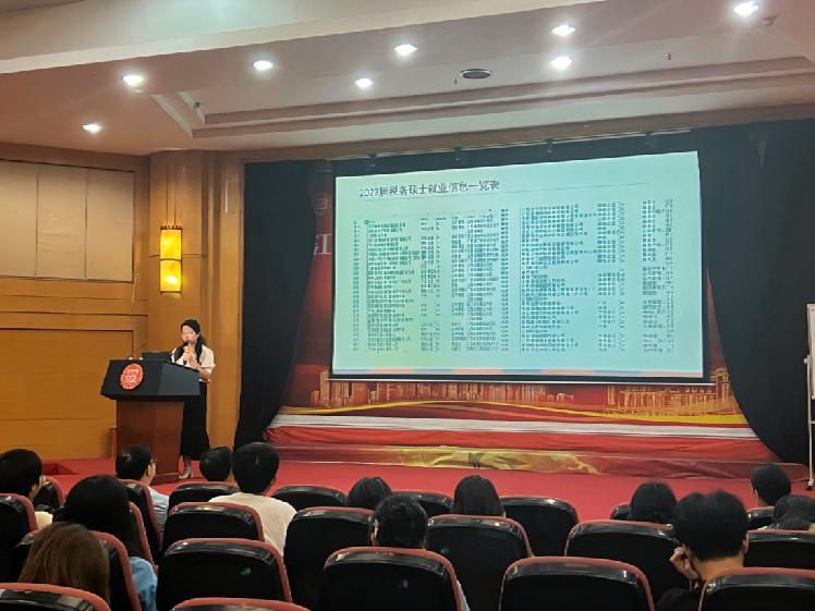 随后,成人动漫 的尹琪老师介绍了2021-2023年本科毕业生的升学、就业情况。并就考研择校和研究生就业情况与同学们进行了深入交流。关于择校,她强调选择大于努力。她鼓励同学们多思考自己考研的目的是什么,进行精准定位和择校。此外,尹老师还向同学们介绍了成人动漫 各个专业研究生的就业情况。