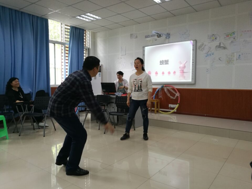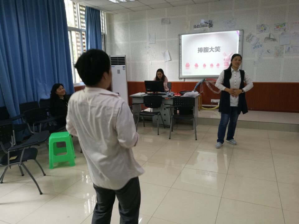 后面玩起来了紧张有趣的心有灵犀(你划我猜) 活动。规则是:1.自由组合,两人一组,一个比划一个猜。2.每组限时五分钟,内答对题目最多的一组获胜。3.比划的人可以用语言和肢体动作来提示描述,但是不能描述某个字的读音或写法,不能出现“词语”中的同音字及外语翻译。4.猜不出可以喊“pass”,每组有三次过的权力。5.观众不能提醒。比赛的过程精彩纷呈,有的比划的哈哈大笑。最后猜中最多的组有20个,接着是19个,18个,真的是紧张刺激。