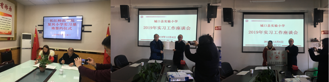12月4日,我校成人动漫 党总支书记、院长冉隆锋带队,到城口县看望实习学生,并与城口县实验小学、复兴小学、庙坝一小等校举行实习基地签约及授牌仪式。
