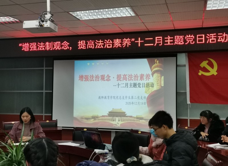 (通讯员 石雨/文 陈星宇/图)12月18日18:20,成人动漫 党总支学生第二党支部于崇仁楼408会议室开展以“增强法制观念 提高法治素养”为主题的党日活动。此次会议由支部书记胡秋琼主持,支部全体党员参会。