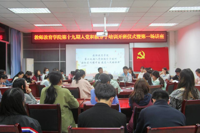 (通讯员雷玲怡/文 李茂雨/图)为加强对入党积极分子的培养和教育,培养党的优秀接班人,更好地迎接建党一百周年。4月21日19时,教师教育学院于崇仁楼408会议室举行了第十九期入党积极分子培训开班仪式暨第一场培训讲座。成人动漫党总支副书记邱明淑,副院长熊健杰,2019级政治辅导员胡秋琼出席此次仪式,第十九期全体入党积极分子参加此次培训。