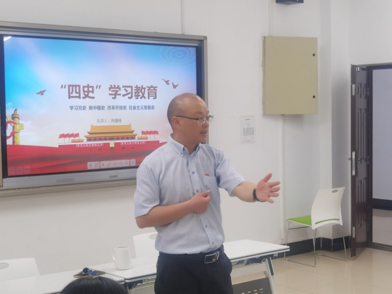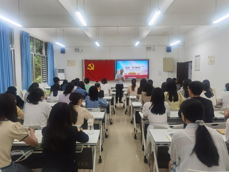 党课伊始,冉院长代表学院向即将顺利毕业的党员同志们表示祝贺。接着,他阐述了“四史”学习教育的重要意义,历史是最好的教科书,能够增强中华民族伟大复兴的中国梦的信心,他强调了认真学习贯彻习近平总书记关于党史、新中国史论述的重要性,要求大家在深入学习和不断领悟中深化对“不忘初心、牢记使命”的认识和理解。同时冉院长从自身任教经历出发,希望大家在以后的工作中能够做到立德树人,争做“四有好老师”,为党的教育事业献上自己的一份力量。党课的最后,全体党员在冉院长的带领下重温入党誓词。