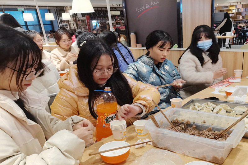 本次团会以包饺子的形式开展。在包饺子的过程中,同学们别出心裁地将饺子设计成各种形状,并围绕学习、生活、工作等话题进行交谈,同学之间的感情也随之加深。随后,同学们将包好的饺子送至食堂工作人员处烹煮。在等待饺子出炉的过程中,大家通过分享自己家乡小雪的习俗,例如腌制腊肉、品尝糍粑、吃刨汤等来了解有关小雪的文化知识。一段时间后,一盘盘饺子被送上餐桌,同学们拿起碗筷品尝自己的劳动成果。活动后,大家纷纷表示包饺子的过程有趣、欢乐,饺子味道也鲜美,给自己的大学生活留下了一段美好的回忆。