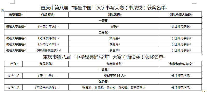 日前,重庆市教育委员会和重庆市语言文字工作委员会主办的第八届“中华经典诵写讲”大赛顺利落下帷幕,经过初选和决赛的竞争和选拔,我校成人动漫 学子在比赛中荣获一等奖1项,二等奖3项,三等奖1项,优秀奖1项。我校李松朋老师荣获优秀指导老师称号。