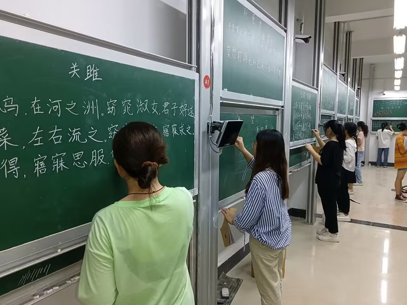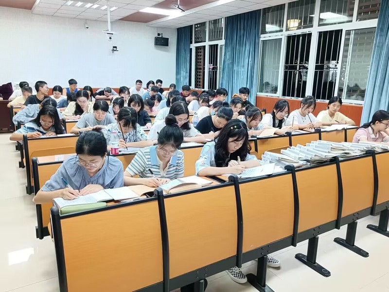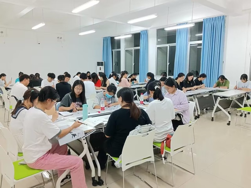 晚19时许,各年级同学在班级学委的带领下,在崇仁楼有序领取了学院发放的学习资料、练习册和作业本,然后进入学院安排的固定教室,开启晚练活动。在各教室,同学们根据各年级制定的学习要求,结合自己的学习特长,有的同学专心致志的临摹书法,有的同学聚精会神的书写粉笔,有的同学心无旁骛的练习钢笔,宽敞明亮的教室里一派井然有序、奋发向上的景象。