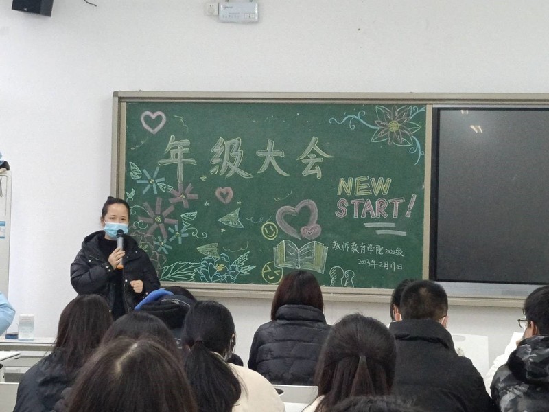 会议伊始,张老师提到新冠疫情仍未结束,并建议做好健康监测,做好自身健康的第一责任人。接着,她从早晚自习、晨晚检、寝室内务等方面出发,为同学们讲解了返校后的日常管理相关事宜,希望大家既能做到学习优,也能做到内务佳。紧接着,张老师着重强调考风考纪问题,要求大家恪守考试纪律,认真备考、诚信参考,高效保质的完成考试。最后,她希望同学们能有目标、有方向地规划余下大学生活,并不断扎实师范生技能,踏实进取、团结协作,收获属于年级、班级和个人的精彩。