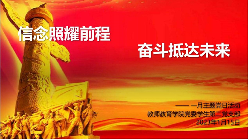 1月15日19时成人动漫 教育学学科组党支部特在线上开展了“信念照耀前程 奋斗抵达未来”一月主题党日活动。1月15日14时,成人动漫 教师技能与心理学党支部特组织支部党员于线上QQ群开展了“信念照耀前程 奋斗抵达未来”一月主题党日活动。1月17日19时,成人动漫 党委学生第一党支部采取了线上会议的方式,开展了以“信念照耀前程,奋斗抵达未来”为主题的党日活动。此次会议由支部书记李君主持,学生第一党支部党员参加。1月15日20时,成人动漫 党委学生第二党支部于腾讯会议开展了以“信念照耀前程 奋斗抵达未来”为主题的党日活动。此次会议由支部书记陈红主持,学生第二党支部全体党员参加。