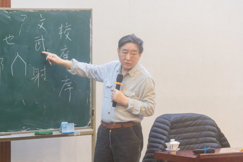 讲座伊始,张教授提出了“育人非育器”的教育主张,并做了深入浅出的阐释。他着重强调,在教育中要培养学生正确的天地观念,努力构建人与自然、人与自我、人与社会的和谐关系。接着,他将人类积累式学习与动物即时性学习做了比较,指出文字对于文明传承与人自身发展的重要价值。最后,他从字源的角度出发,深刻阐述“道”的意义。大家认真记录,感触颇深。张教授勉励大家应深刻认识急剧变化的时代,在传统与现代两个向度上履行好所肩负的教育使命。此次讲座在热烈的掌声中落下帷幕。