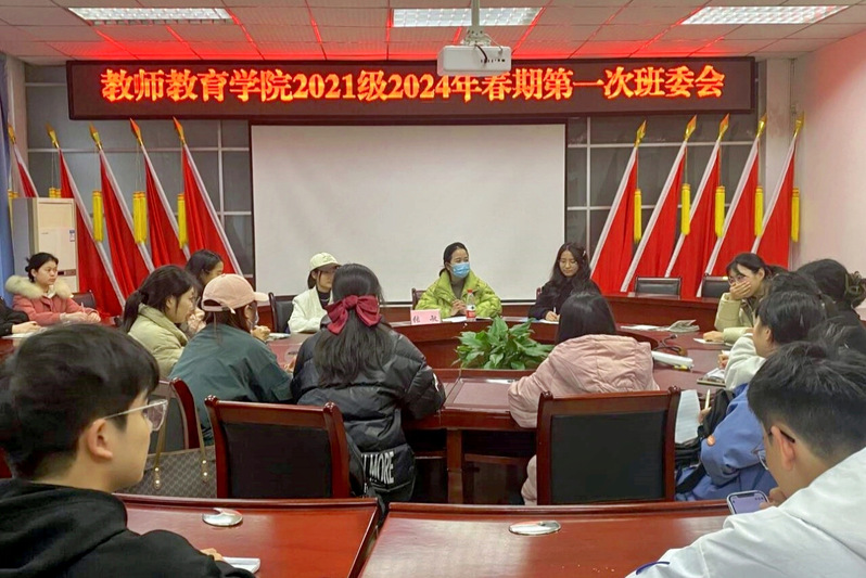 会议伊始,张老师简要总结了开学以来各班班级常规工作的开展情况,并对其后续开展提出建议。同时,她还鼓励各班积极开展班级特色活动,彰显班级风采,提高班级凝聚力。接着,张老师对近期将要举办的大型比赛活动的时间与内容进行介绍,着重强调了“寻访身边的好老师”师范生实践课程活动的相关注意事项,表达了对同学们能够把握机会,在比赛中大放异彩的期望。最后,她希望班委们不仅要自己保持良好的心理状态,更要发挥好班委的力量,积极主动地关心周围同学的心理健康问题,营造健康、和谐的班级氛围。