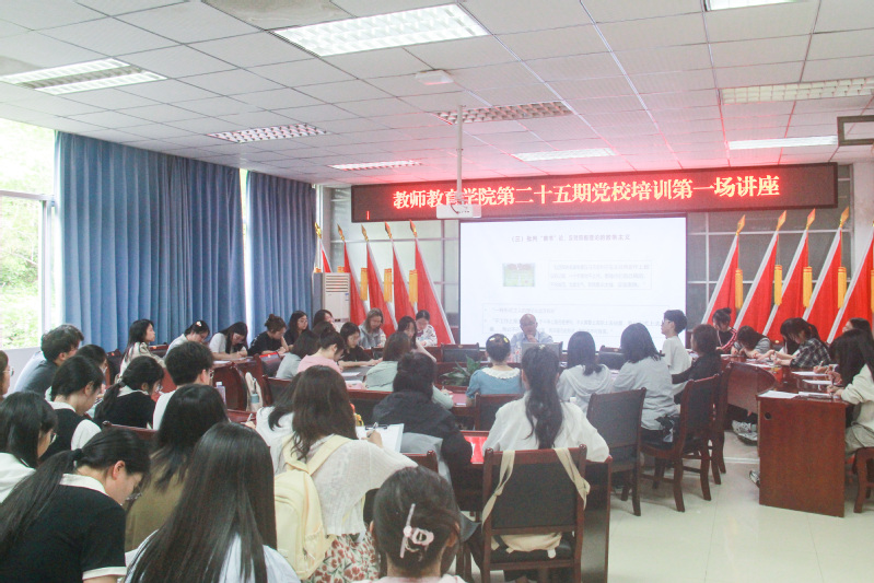 此次党课,冉校长以毛泽东主席的文章《反对本本主义》为例向同学们讲解如何去阅读一本红色经典。他从《反对本本主义》的创作背景、主要内容、历史价值和现实启示四个方面,向大家展现了“实事求是”的重要性,并通过几例身边的案例,强调写作能力的提升需要多阅读、多观察、多调查,为同学们提供了非常有效的建议。最后,冉校长强调要多多阅读红色经典,坚定忠党信念,做到实事求是,不要误入“本本主义”。讲授结束后,2023级小学教育全科三班马诗韵说“此次党课使我更加坚定了坚持实践第一,勇于探索创新的决心,也为我在未来的学习、工作乃至人生道路上提供了重要的思想指引。”