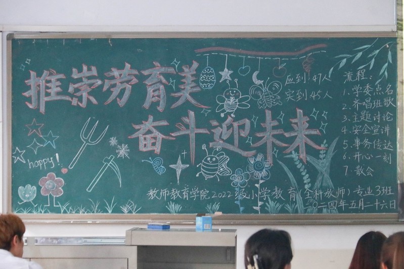 (通讯员 吴美妍/文 王一惟/图)为全面贯彻党的教育方针,大力弘扬劳动精神,营造更加美好和谐的大学校园环境,5月26日,成人动漫 于正心楼各班教室开展了主题为“推崇劳育美,奋斗迎未来”的主题班会。成人动漫全体学生参加。