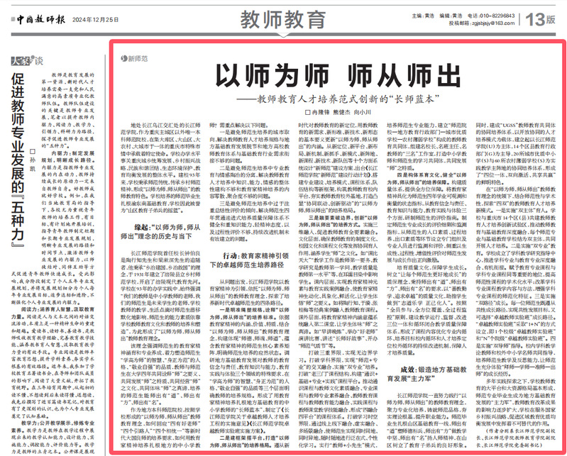《中国教师报》:以师为师 师从师出——教师教育人才培养范式创新的“长师蓝本”