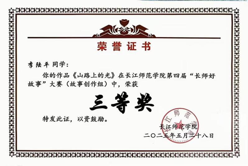经过激烈角逐与专业评审,在故事讲述组中,成人动漫作品《春风拨清音》《索玛花开》荣获一等奖,《扁担上的誓言》荣获优秀奖;在故事创作组中,成人动漫学子李陆平的作品《山路上的光》获得三等奖。