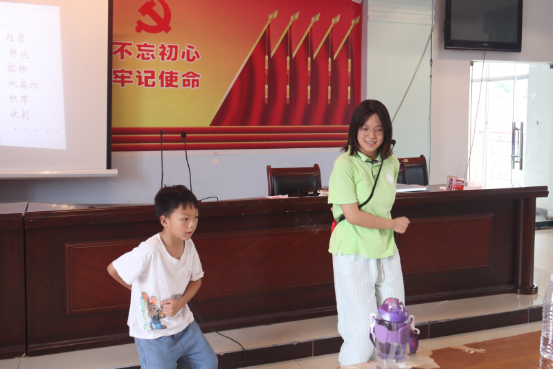 小先生结合生动的图片分享“麦子的一生”,让学生们认识到麦子从种子变成金灿灿麦穗的奇妙旅程,激发他们课堂积极性。小先生还深入讲解了农具,扩宽了孩子们的知识面,明白劳动的价值与意义。“土家族摆手舞”等趣味游戏将现场气氛推向高潮,孩子们载歌载舞,在舞蹈中感受农耕文化的魅力,从而传承中华民族的传统美德。