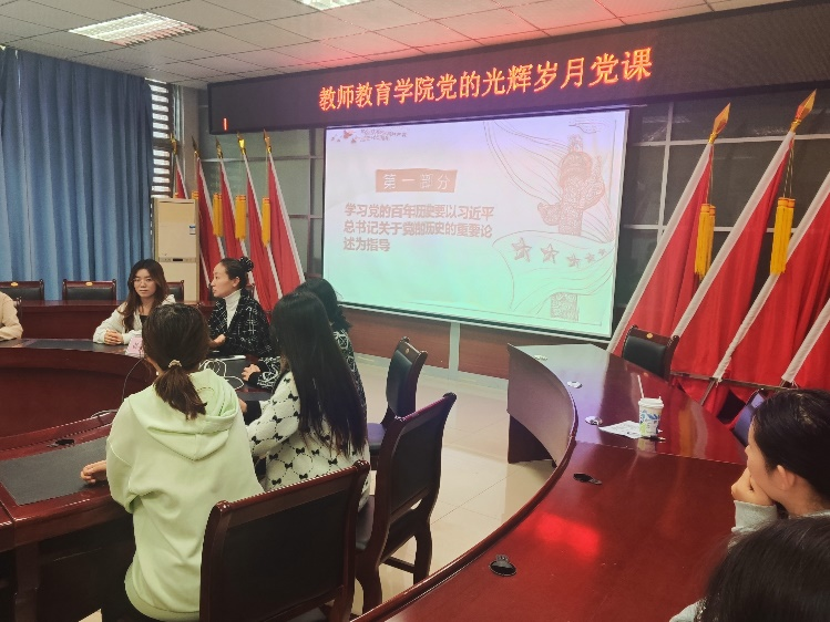 在党课学习的会议中,郝予琪都对十九届六中全会的内容进行了深刻分析,提出勿忘昨天的苦难辉煌,无愧今天的使命担当,不负明天的伟大梦想的希望。其中,学生第一党支部支部书记郝予琪提出期望,希望各位同志能学会做一个堂堂正正的人,认认真真的做事,练好基本功,向着成为一名甘于奉献的小学教师而不断努力奋斗。学生第二党支部支部书记胡秋琼强调道:“作为党员,我们要学习社会主义革命和建设时期的自力更生、发愤图强,更要做到中国特色社会主义新时代的自信自强、守正创新。同时,我们要保持以咬定青山不放松的执着,奋力实现既定目标,以行百里者半九十的清醒不懈推进中华民族伟大复兴。”