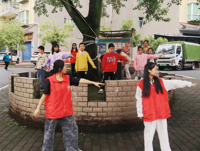 第二堂课中,另一位小先生们以歌曲《带着幸福来见你》为引,融舞于文,讲解土家摆手舞基本动作要领并组织练习。随后课堂转至社区院坝,孩子们载歌载舞,献唱多首歌曲,用童声与舞步向在场长辈深情献礼。一曲一舞皆是情,一歌一跃满是敬,孩子们用最纯真的方式为长者送上节日祝福,让尊老之情在重阳的暖阳里静静流淌。