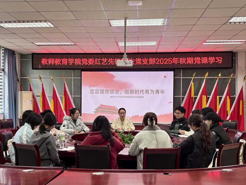 (通讯员 韦晨曦)为引导大学生党员明确精神坐标、凝聚奋进力量,11月3日,成人动漫党委红艺先锋学生党支部开展新学期第一节党课学习。围绕“坚定理想信念,筑牢信仰之基——新时代大学生党员的精神坐标”主题,接受了一次深刻的思想淬炼与精神洗礼。