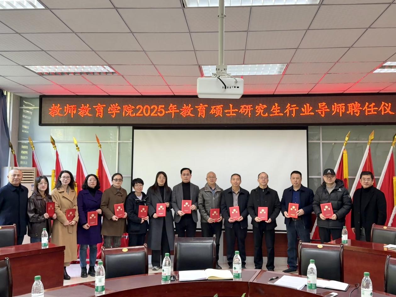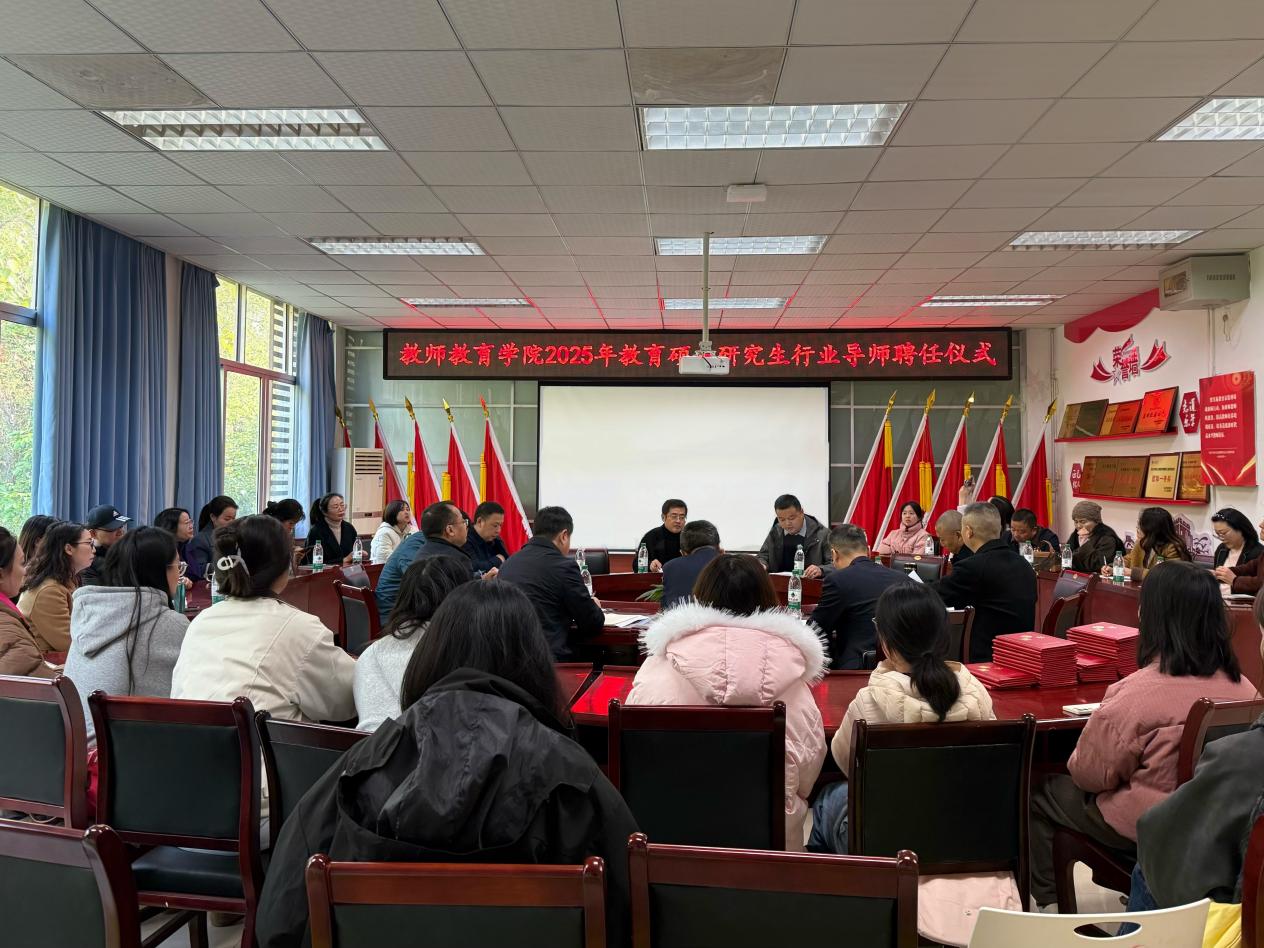 11月21日,我院于崇仁楼408会议室举行首届教育硕士行业导师聘任仪式。学院党委书记杨伟、副院长周大众、教育管理专业学科带头人向帮华教授、学科教学(语文)专业学科带头人周航教授、教学秘书张梅琳老师、研究生辅导员李丽娜老师以及各专业的行业导师们出席仪式。