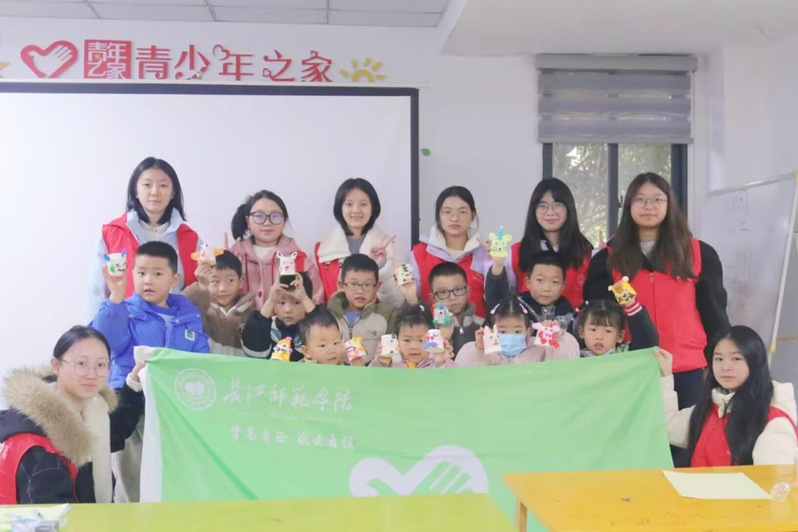 生肖手工课上,小先生讲解生肖文化知识,引导孩子们细致观察生肖动物特点,示范黏土纸杯制作技巧。孩子们实践热情高涨,发挥奇思妙想创作专属生肖萌宠。小先生耐心指导答疑,协助解决制作难题。作品完成后,孩子们兴奋地分享自己的生肖萌宠,现场互动频繁、笑语不断。