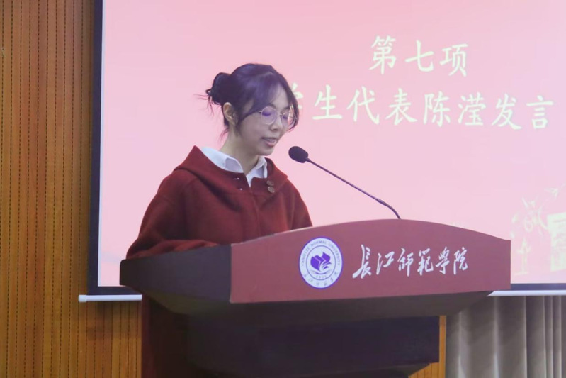 学生代表陈滢则表达了全体新生的心声,对大学生活有导师一路指引,感到无比幸运。她表示,同学们将珍惜这份师徒情谊,在导师的带领下,不负韶华、不负教诲,在大学时光里绽放光彩。