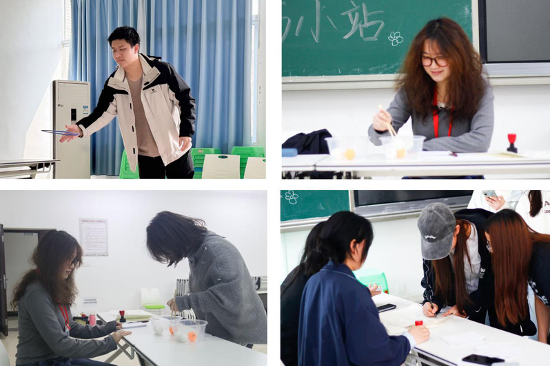 活动现场设置了丰富的趣味游戏。在“欢乐套圈”与“弹珠搬运”区域,同学们或凝神投掷、身手敏捷,或屏息运球、切磋技巧;来到“你画我猜”与“看文字说颜色”环节,同学们脑力全开、默契配合。活动过程井然有序,现场气氛热烈,洋溢着青春蓬勃的朝气。