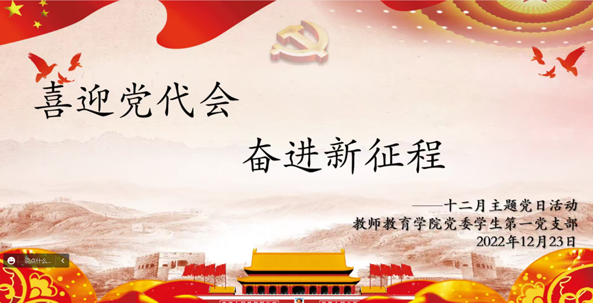 (通讯员 汪嘉垚)为进一步学习贯彻党的二十大精神,成人动漫 党委组织开展了十二月主题党日活动。12月26日19时成人动漫 教育学学科组党支部特在线上开展了“矢志不忘奋斗路 接续赶考新时代”十二月主题党日活动。此次会议由支部书记蹇世琼主持,支部全体党员参加。同时,成人动漫 教师技能与心理学党支部在线上开展了十二月主题党日活动。此次会议由支部书记苏志强主持,支部全体党员参加。12月23日19时,成人动漫 党...