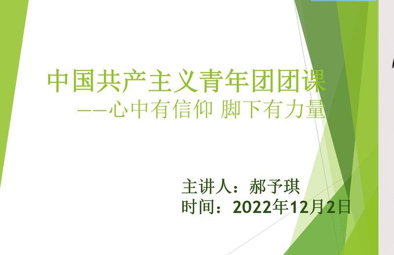 (通讯员 陈思颖)为增强同学们对团的认识,鼓励同学们凝聚精神力量,担当青春使命,2022年12月2日19时,成人动漫 于线上腾讯会议开展了以“心中有信仰 脚下有力量”为主题的讲座,郝予琪老师担任主讲人。 讲座伊始,郝老师阐述了共青团的性质和作用。接着,她从了解信仰、践行信仰、坚持信仰三个部分展开了对中国共产主义青年团的详细介绍。其中,郝老师强调了凝聚精神力量对于新时代青年成长成才的重要作用。最后,郝老师带领...