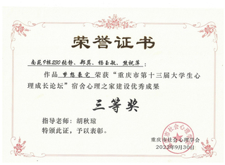 (通讯员 王心月)日前,“重庆市第十三届大学生心理成长论坛”心理成长微课比赛评选结果揭晓,在张敏、胡秋琼老师的指导下,我...