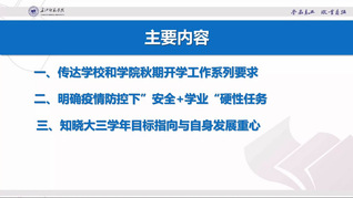 (通讯员 李思雨)为全面落实学校和学院关于2022年秋期开学工作系列要求,常态化做好疫情防控等各项工作,帮助年级学生以饱满的...